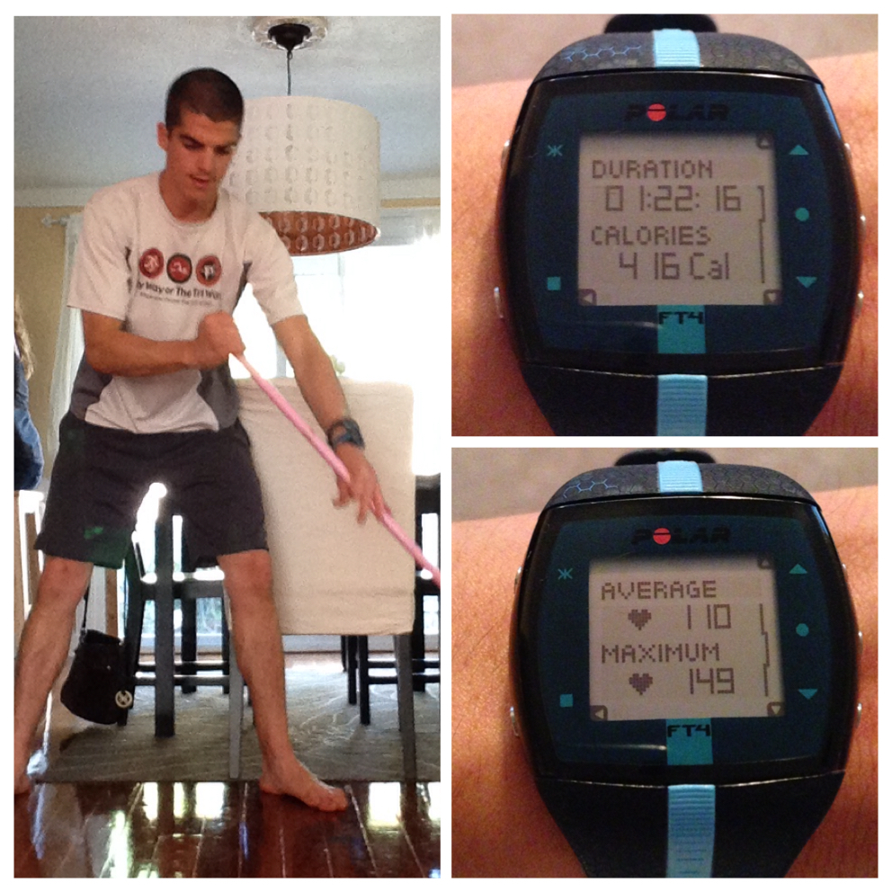 Happy Easter everyone! Hope you all are enjoying your holiday. Shannon and I are hosting her parents for Easter brunch, which means we had to do a lot of prep work yesterday in order to get ready. Shannon took on the cooking responsibilities while I tackled the cleaning. By the time we finished all the grocery shopping Saturday afternoon, it was 5pm before we could get to our respective duties. In addition to our late start, I realized I had yet to complete my daily workout. I decided to employ my multitasking abilities and incorporate my workout into cleaning the house. Here’s how I accomplished both tasks simultaneously: